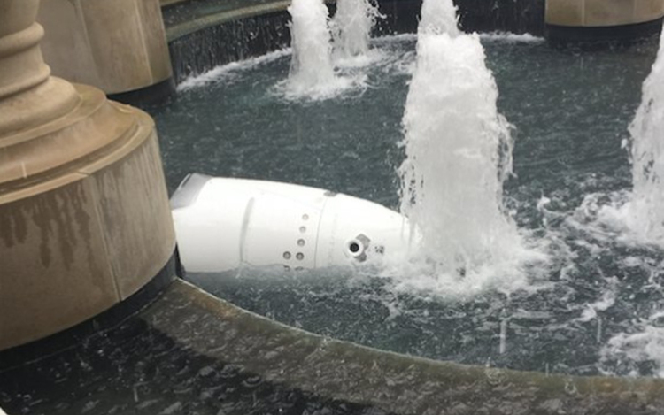 Beleborult az egyik nyilvános szökőkútba és "megfulladt" egy robot biztonsági őr a héten az egyik washingtoni bevásárló- és irodakomplexumban.